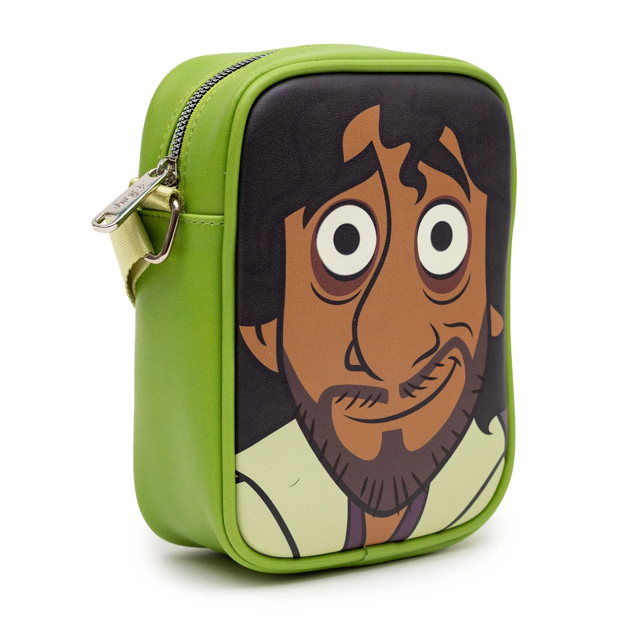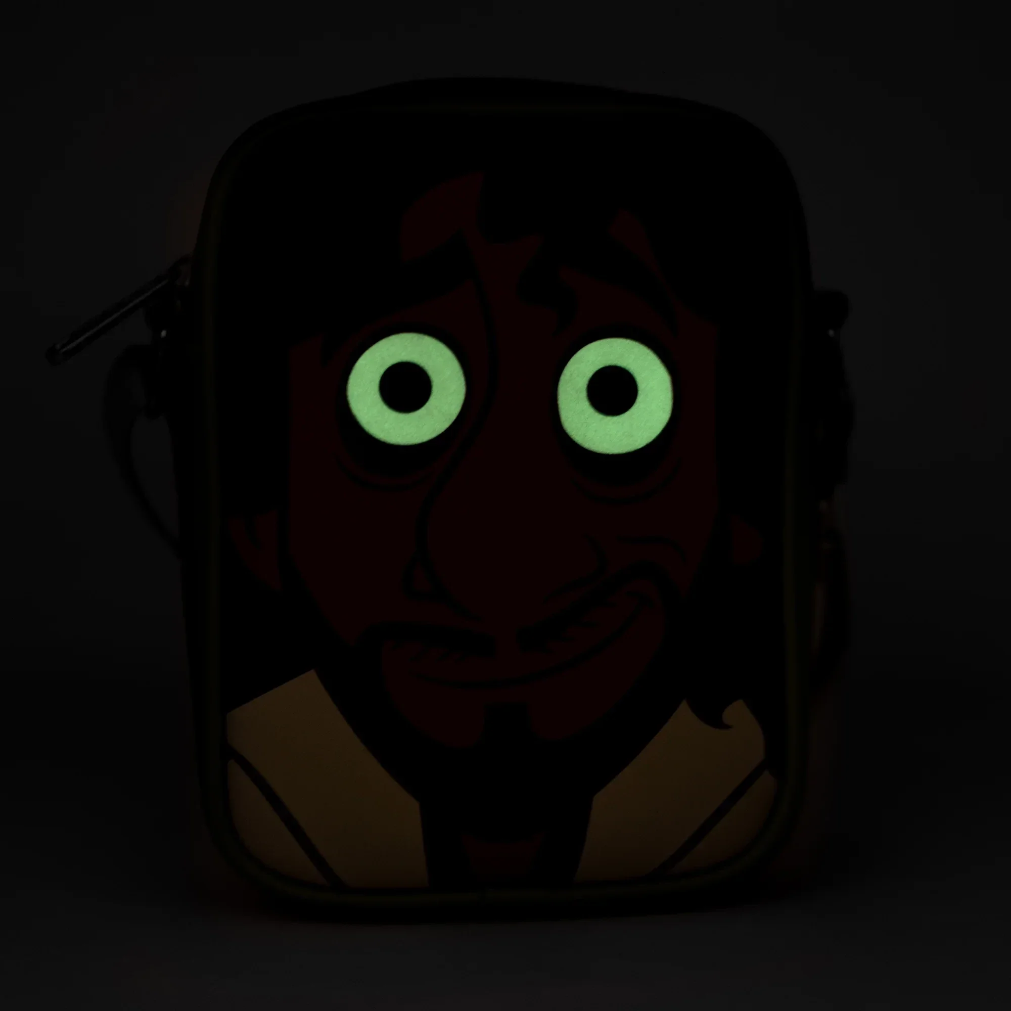 Introducing the perfect accessory for any Disney fan – the Encanto Bruno Character Face Close Up Cross Body Bag! Made from high-quality vegan leather, this flat crossbody bag is both stylish and eco-friendly. Featuring a close-up of the lovable Bruno character from Encanto, this bag is sure to turn heads wherever you go. The GLOW IN THE DARK eyes add an extra touch of magic, making it the perfect accessory for nighttime adventures. With a strap length of 32-64 inches, this bag is the perfect addition to your wardrobe