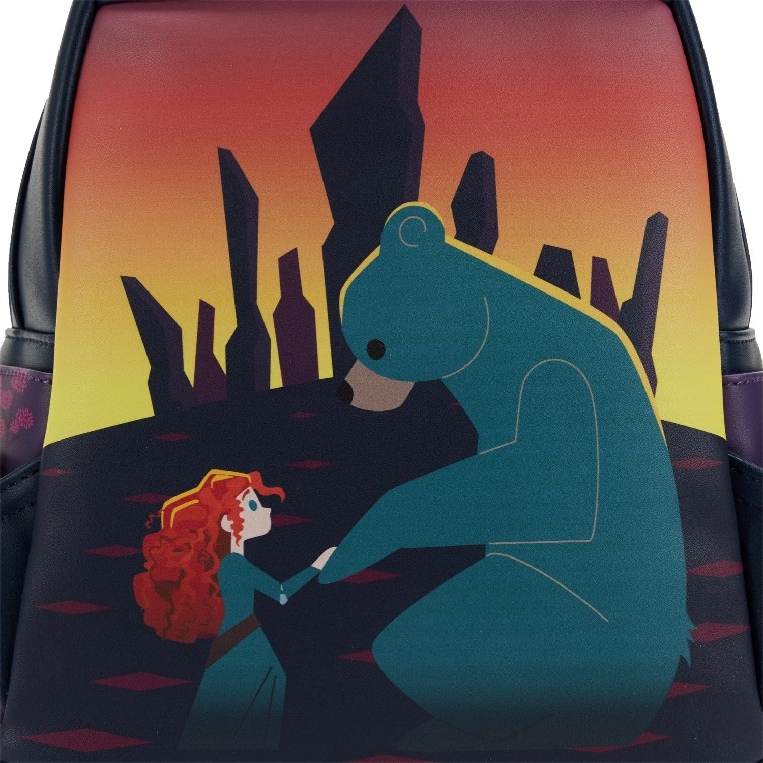 Feast your eyes on the Brave Princess Castle Series Mini Backpack. As Merida questions whether she can change her fate, she encounters a mysterious will-o’-the-whisp in the forest outside her kingdom. When the daylight fades, the will-o’-the-whisp glows in the dark to illuminate her path. Turn the bag around to find a touching scene of Merida reuniting with her mother in bear-form. This beautifully detailed mini backpack has room for all your adventure essentials and is destined to join your Disney-Pixar Loungefly collection.