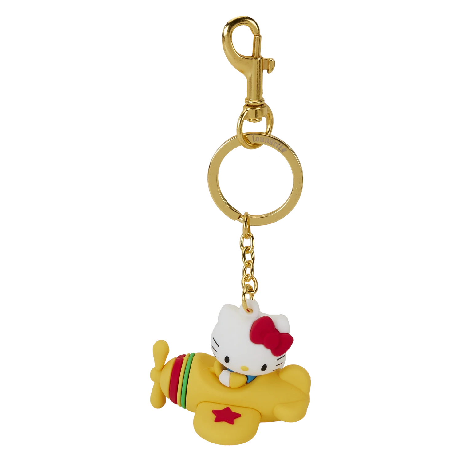 Why fly solo? Bring along a few friends and share smiles with this Hello Kitty 50th Anniversary Classic Figural Silicone Keychain. This adorable accessory features Hello Kitty, with her signature red bow, in a bright yellow airplane. Turn all your journeys into fun-filled adventures with a unique, fully figural, silicone molded keychain.