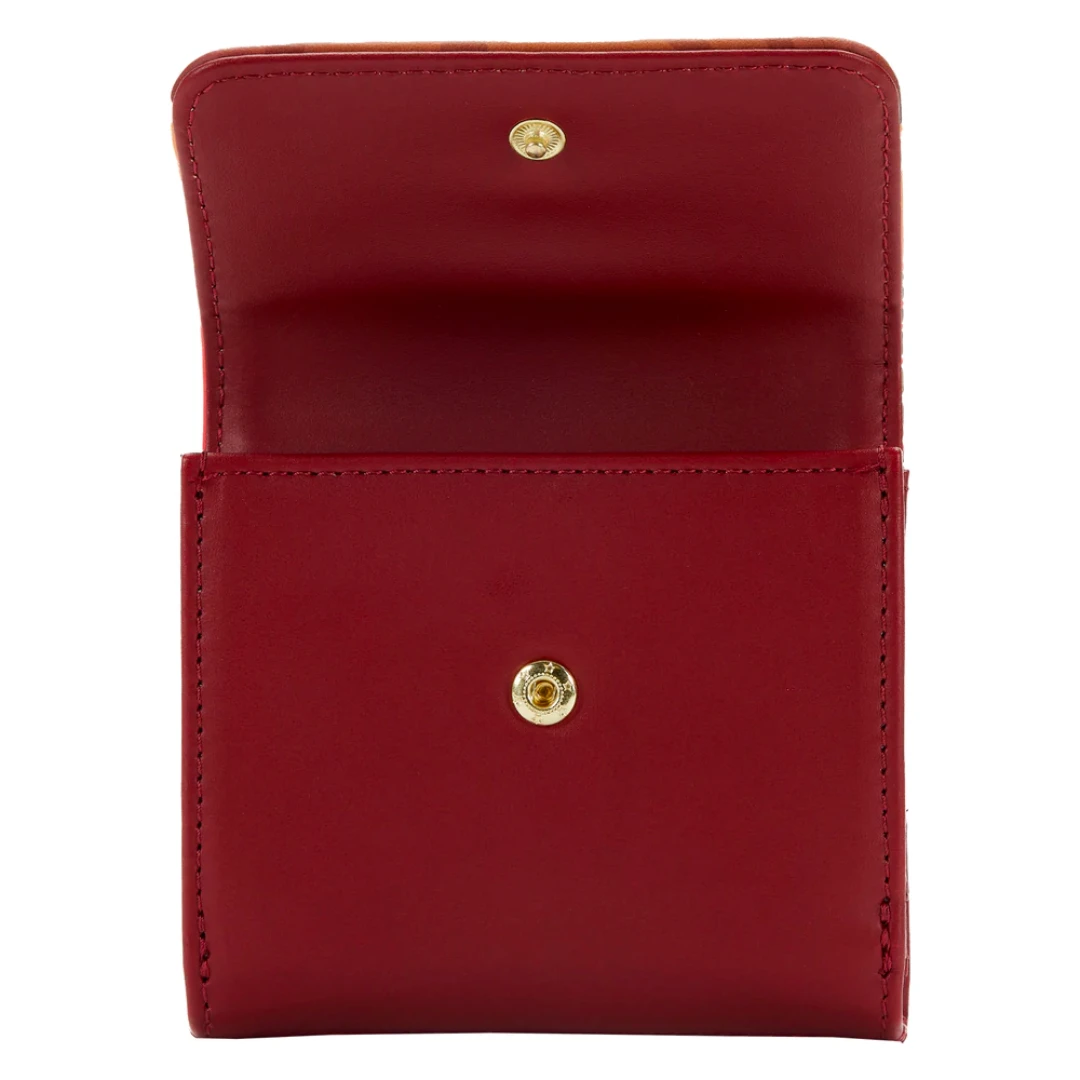 Training begins now! Join the ranks of a mythical hero with this Loungefly Hercules 25th Anniversary Sunset Bi-Fold Wallet. On the front of this flap wallet, Phil, Hercules, and Pegasus balance on tree stumps against a setting sun. Their shadows lengthen in the distance. On the back, a debossed pattern of menacing-looking practice targets lines up. An accordion zipper opening reveals a coin purse for extra convenience and organization. Unsnap the front, and the inside reveals 3 slots for holding cards, a clear slot for holding your ID, and a billfold slot. It’s the perfect accessory to complement any outfit or to add a bit of magic and fun to everyday outings.