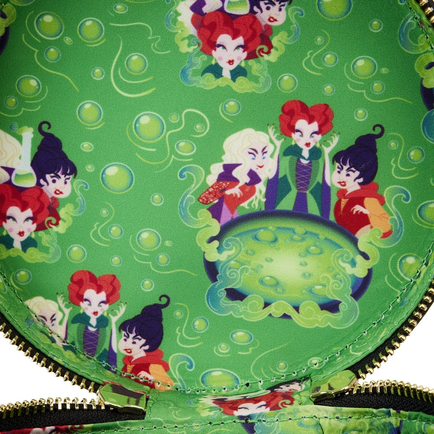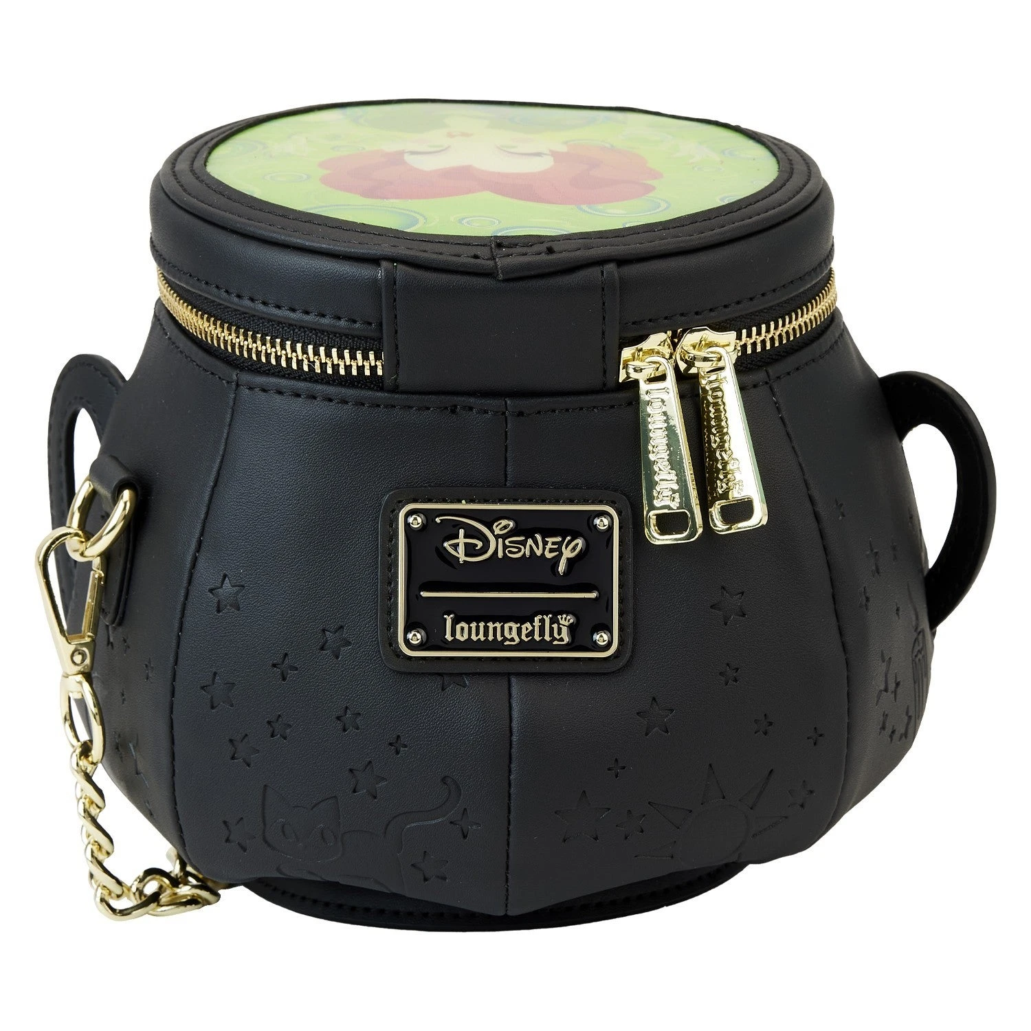 Stir up a delightful commotion with the right ingredients for a captivating potion. Our Loungefly Disney Hocus Pocus Winifred Sanderson Cauldron Crossbody is absolutely bewitching! Fill this cauldron-shaped bag with all the things you need to have a wickedly wonderful day. The zip-around top allows you to lift the lid on the cauldron to fill it. An elegant debossed motif of Binx, stars, moons, and candle shapes runs along the bottom of the cauldron. Lenticular details, at the top, reveal bubbles rising—or, in an alternate view, Winifred’s face peering into the potion. A vegan-leather charm of the Sanderson Sisters finishes the look. In the dark, the green haze that bubbles up around the Sanderson Sisters on the vegan leather charm glows—and so does the vial of potion that they hold. Make a spellbinding entrance wherever you go with this frighteningly fun accessory.