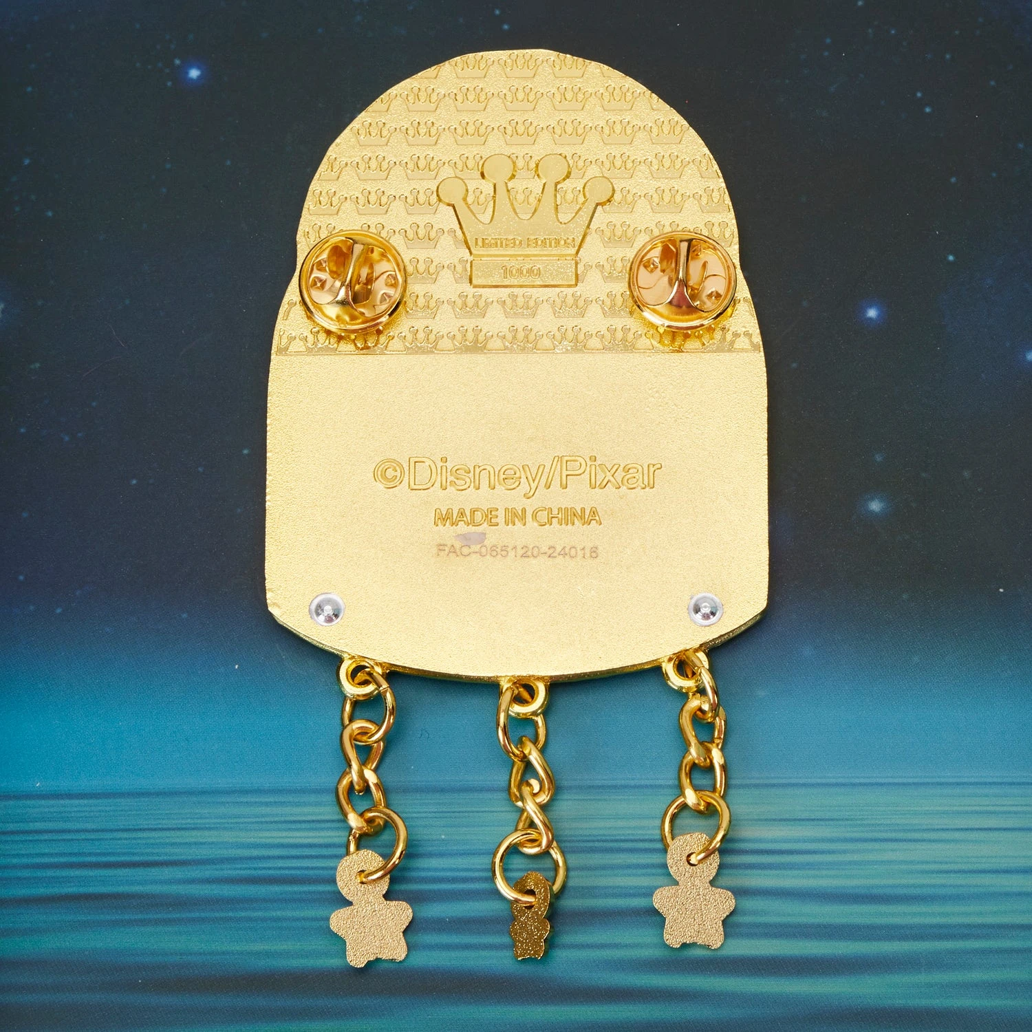 Enamel pin has glow-in-the-dark and dangling part details with shiny gold hardware. The back features the signature Funko/Loungefly crown debossing noting the limited edition 1,000-piece count.
