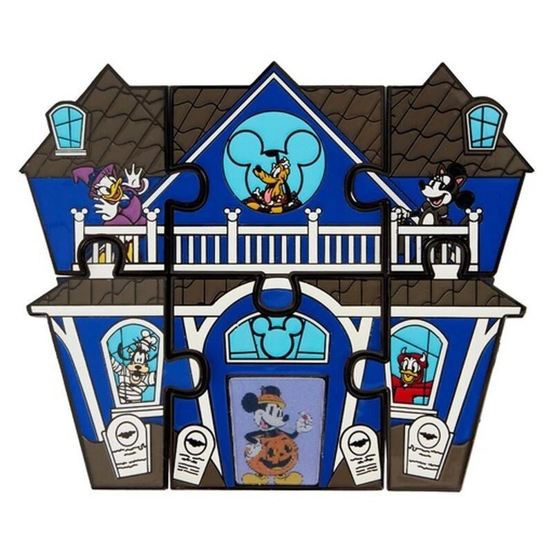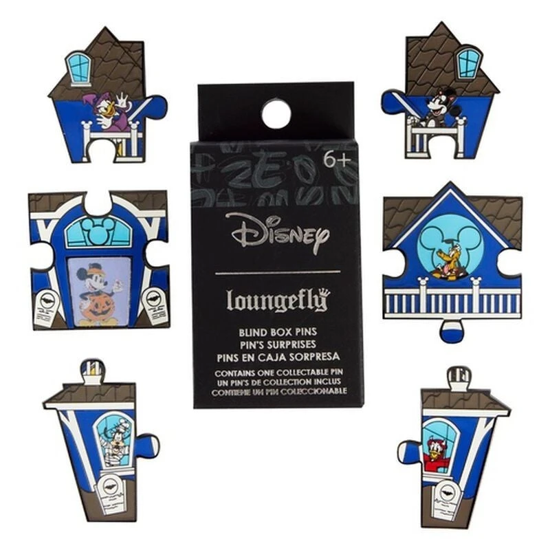 A haunted house party is in full swing, and you’re invited! This Loungefly Mickey and Friends Blind Box Pin set is one delight of a fright. Each pin features a classic character, all dressed up for Halloween—and each one is peeking out from various windows of the house. There’s Daisy Duck, Donald Duck, Minnie Mouse, Pluto, and Goofy. They add a touch of wickedly wonderful fun to any outfit or accessory. Pins are sold individually and blind. Collect all 6. There’s a 1 in 12 chance you may find the lenticular chase. In one view, you’ll find the closed entrance doors of the house. In another view, you’ll find Mickey dressed in his pumpkin costume.