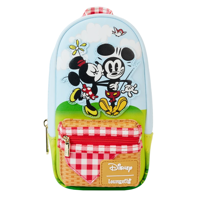 Life’s a picnic when you’re with your pals! Spend a day in the sunny countryside with the Loungefly Mickey and Friends Picnic Mini Backpack Pencil Case. On the front, a woven picnic basket takes shape on the front zipper pocket. Up above, Minnie gives Mickey a smooch as a bird flies above. Turn the pencil case around to see Pluto inspect a line of ants. This accessory makes a stylish addition to any outing and has plenty of room to pack your picnic essentials.