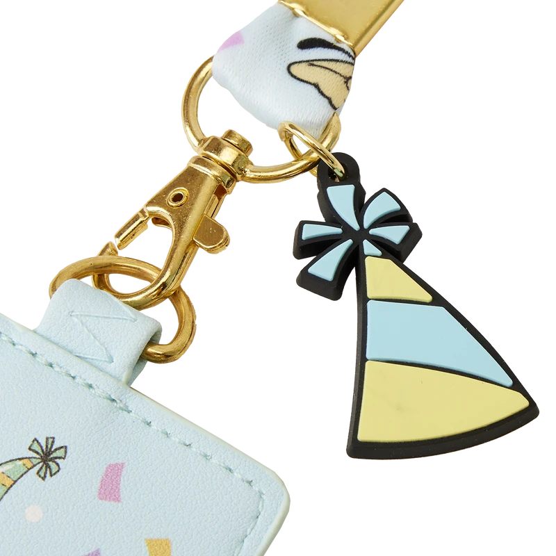 Get the confetti ready! Join in on the festivities with our Loungefly Disney Mickey Mouse and Friends Birthday Celebration Lanyard with Card Holder. On the front, you’ll see that the whole gang has gathered, with their part hats on, including Goofy, Mickey Mouse, Minnie Mouse, Donald Duck, Daisy Duck, and Pluto. On the reverse side of the card holder, there’s a clear slot for displaying your ID. A silicone charm of a party hat tops off the look, and the printed lanyard strap carries a celebratory motif of balloons, confetti, and Mickey and friends. Take the party with you wherever you go with this fun accessory.