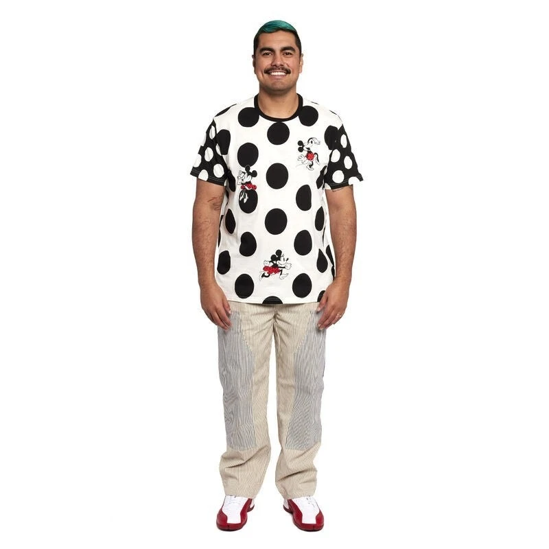 Look dashing in dots! The Minnie Mouse Rocks the Dots Unisex Tee is a fresh and fabulous take on a classic style. This comfy tee features a white background with black dots, and Minnie Mouse takes center stage. You’ll find her in vintage, printed details, freshening up her look, running, dancing, and rocking those dots! The sleeves are color-blocked in black, spotted with white dots for an updated look. Arrive on the dot and in style wherever you go.