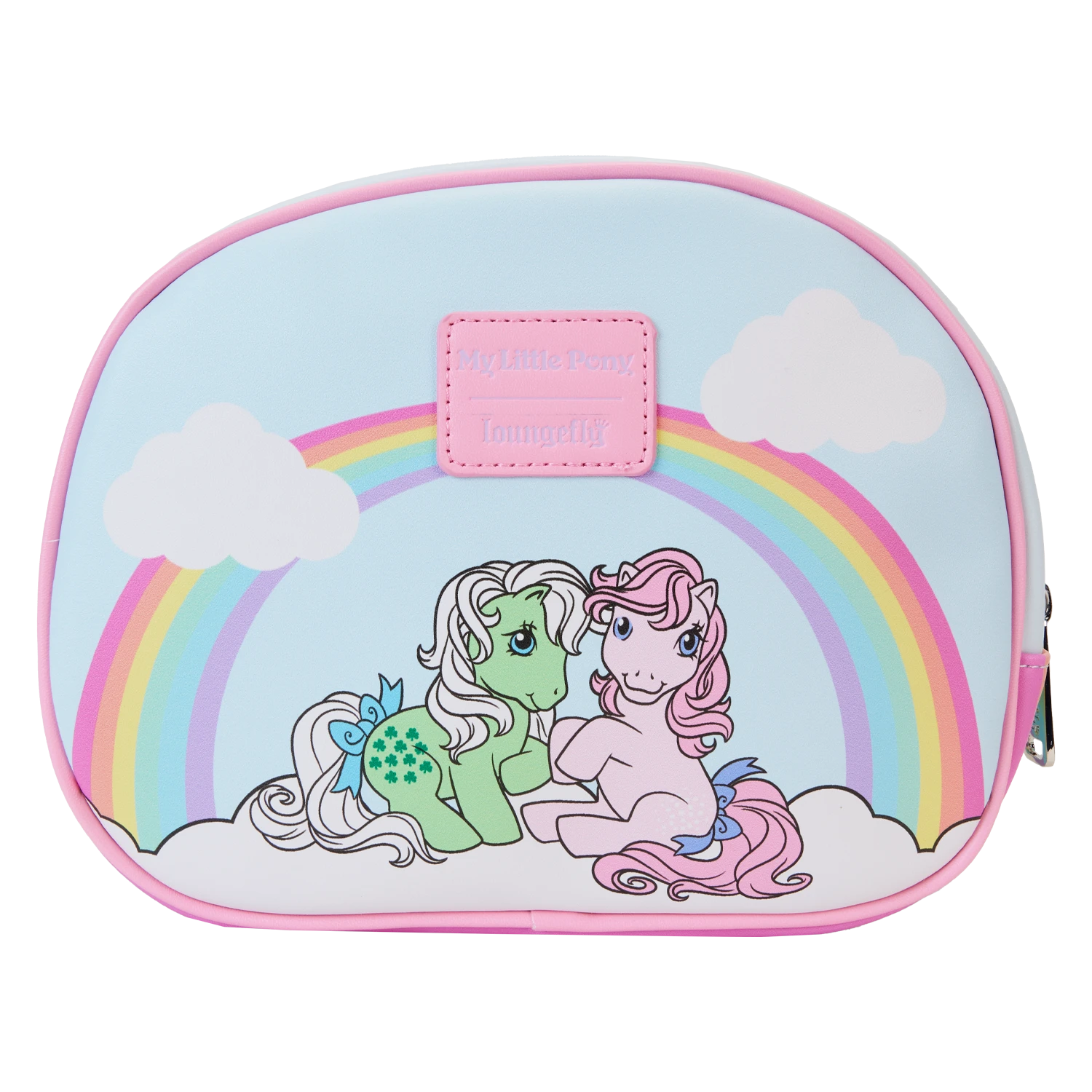 Gallop away with a rainbow of colors! Our My Little Pony 3-Piece Cosmetic Bag Set is ready for magical, fun-filled adventures. This colorful cosmetic set offers a variety of options for storing cosmetics or other smaller items for your journeys. The bags nest inside one another for convenience, and they feature original printed artwork of the My Little Pony Dream Castle, suns, clouds, rainbows, and fan-favorite My Little Pony characters, such as Windy, Medley, Firefly, Starshine, Blossom, Parasol, Moonstone, Skydancer, and more. Secure your essentials while taking the reins in style.