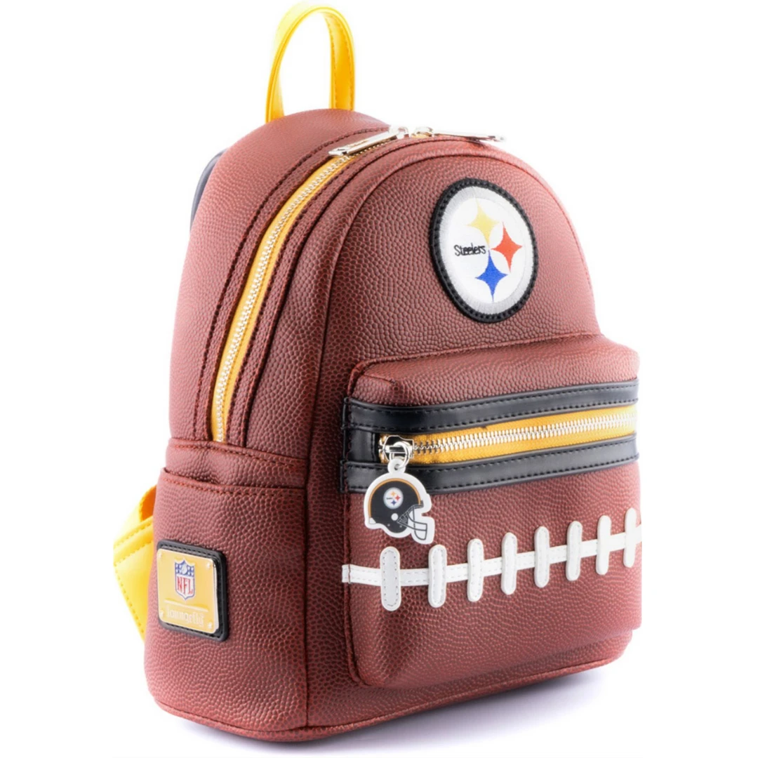 Represent your favorite team whether you’re on your way to practice, a game, or just out running errands with the National Football League Loungefly accessories! This NFL Pittsburgh Steelers Pigskin Logo Mini Backpack is a touchdown for any Steelers fan. The backpack is textured to mimic a football and features an embroidered patch of the team name on the front. It’s perfect for carrying everything you need to and from games.