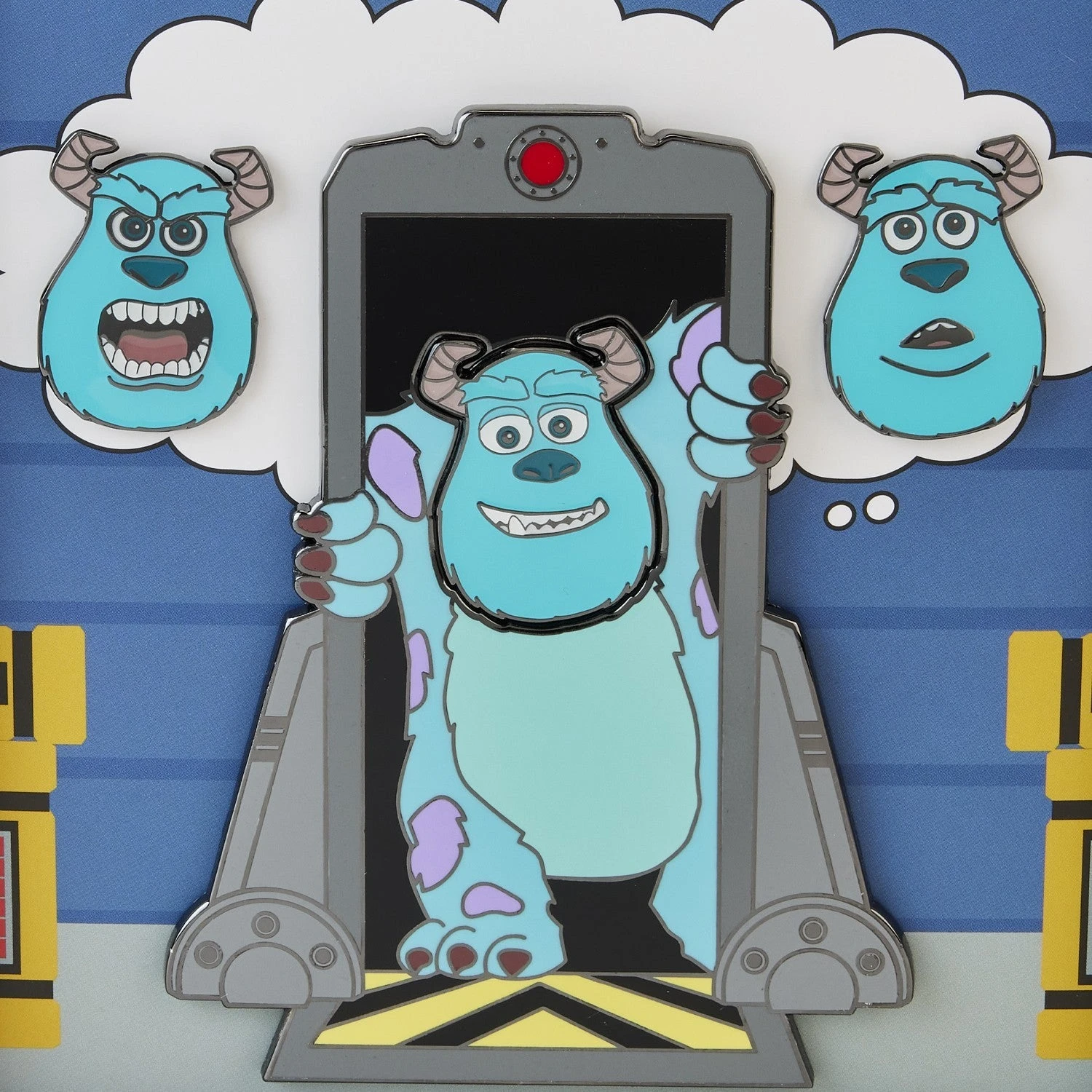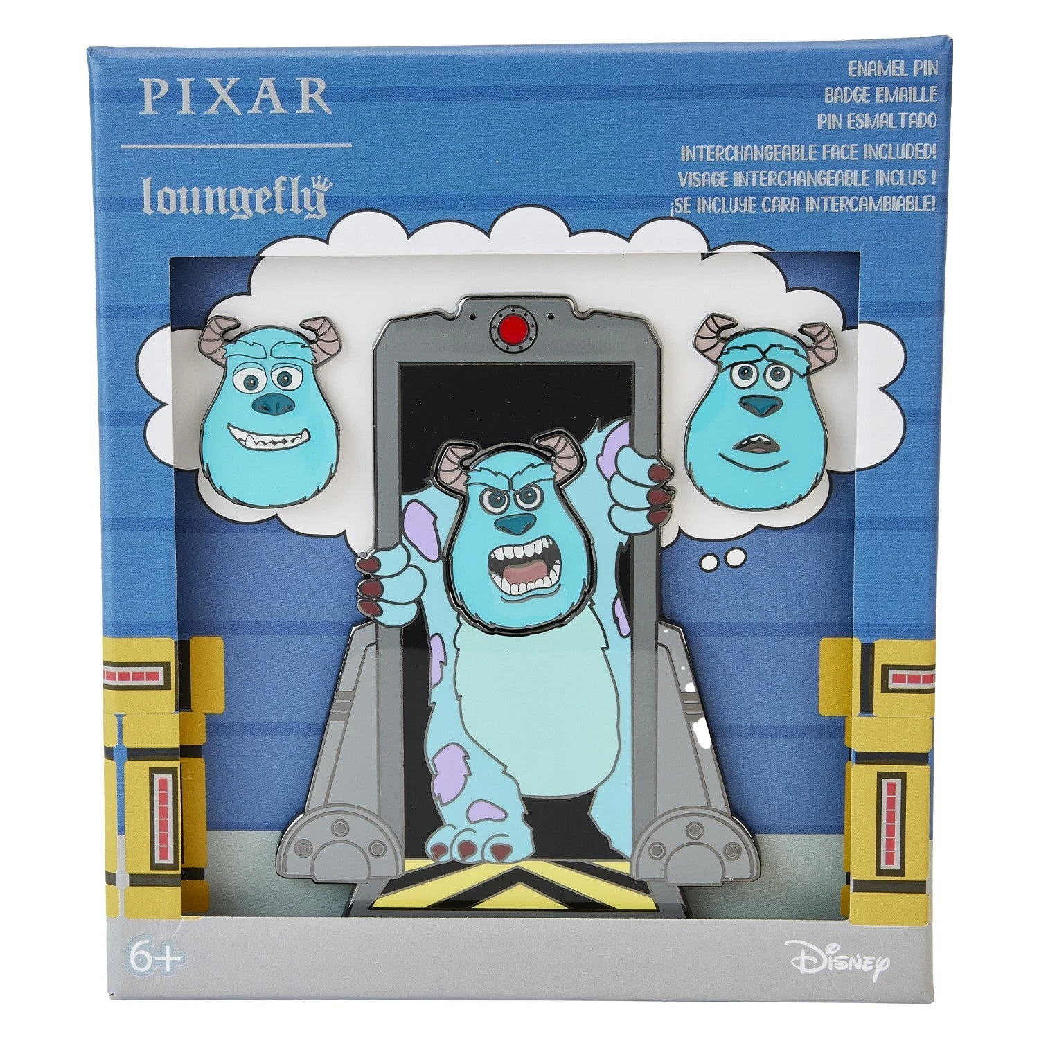 Scream shortage? Not when Sulley’s on the job! Monstrously fun adventures await with our Loungefly Pixar Sulley Door Mixed Emotions 4-Piece Pin Set. This enamel-fill pin set comes with magnetized interchangeable pin parts to show some of Sulley’s moods as he tears through the door. His signature scary face helps keep Monstropolis™ powered up, but this pin set also comes with faces that express Sulley’s happiness or concern. Whichever look you choose, this pin makes for a fun, versatile, and interactive way to show off your fandom.