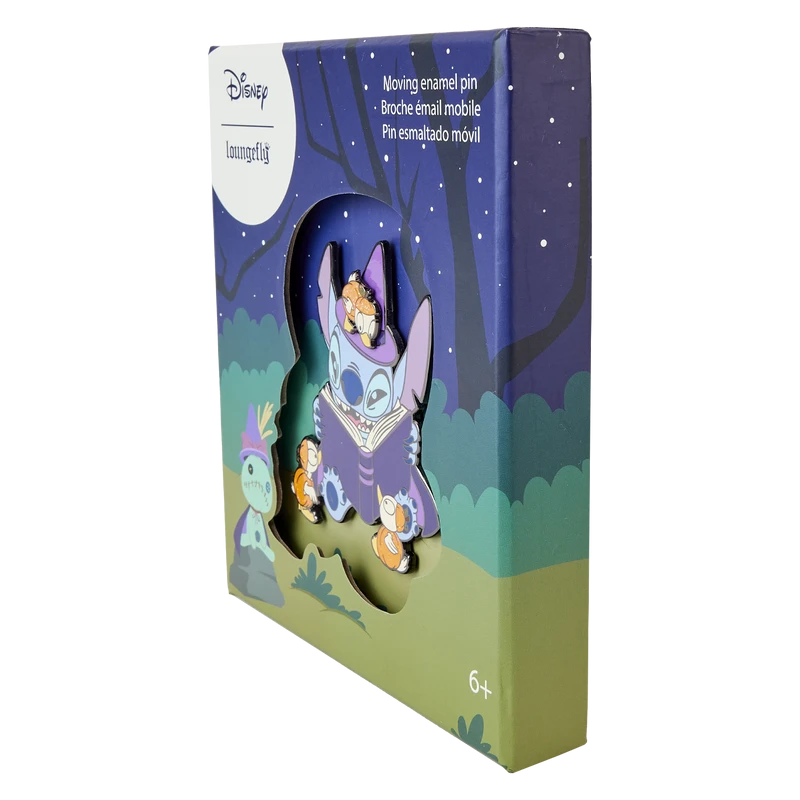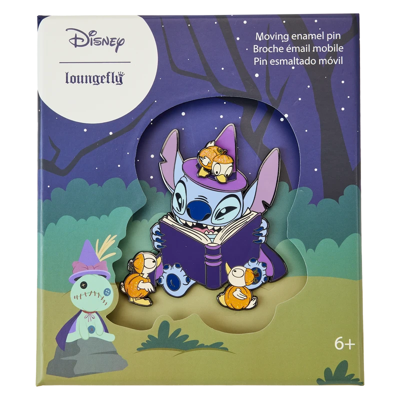 Gather ‘round, it’s time to read a scary story! This loveable alien has gathered his friends for a costume party on the Loungefly Stitch Halloween Sliding Pin. Dressed in a bewitching outfit, Stitch tells a tale to some ducklings dressed in pumpkin costumes. Set the scene in motion by sliding the duckling back and forth on Stitch’s hat! A playful addition to any outfit or bag, this pin marks a fun new chapter in any Disney collection.