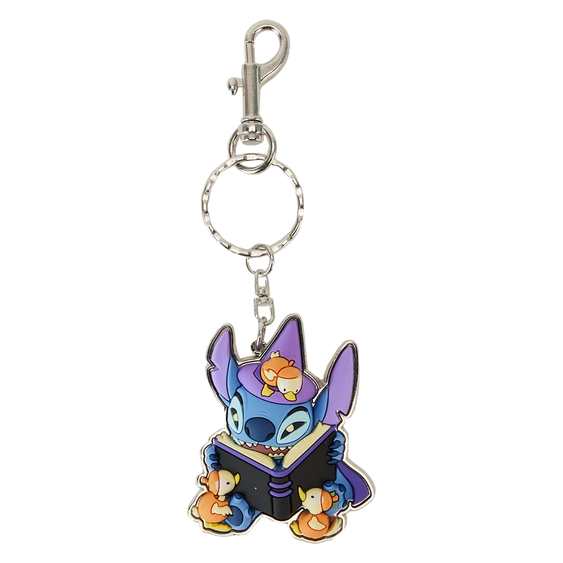 Gather ‘round, it’s time to read a scary story! This loveable alien has gathered his friends for a costume party on the Loungefly Stitch Halloween Keychain. Dressed in a bewitching outfit, Stitch tells a tale to some ducklings dressed in pumpkin costumes. Bring your favorite characters with you on your next adventure by adding an extra storytelling moment to your bag or key ring.
