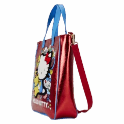 Backpack features include shiny silver-colored metal hardware, adjustable straps, side pockets, vegan leather (polyurethane), and printed, debossed, and applique details. Note the coordinating lining.