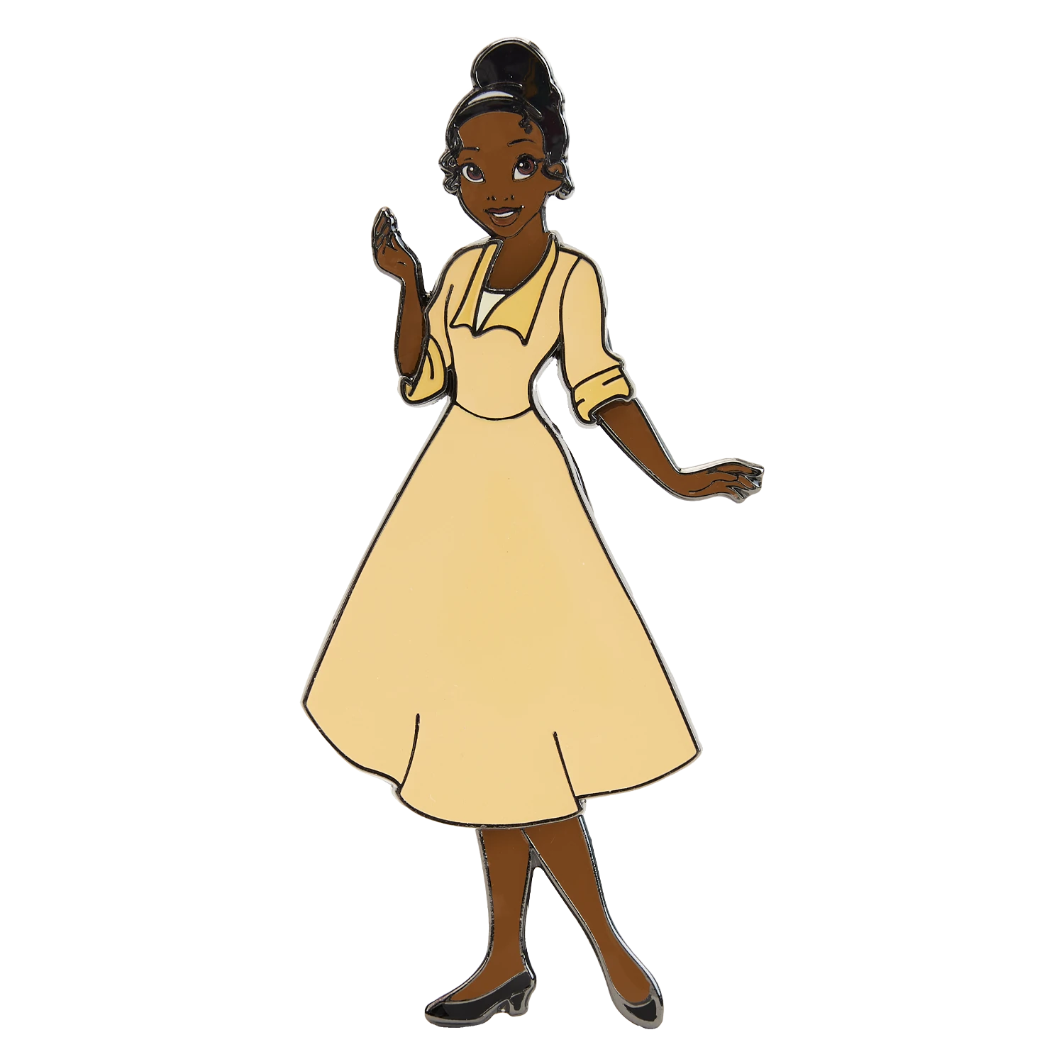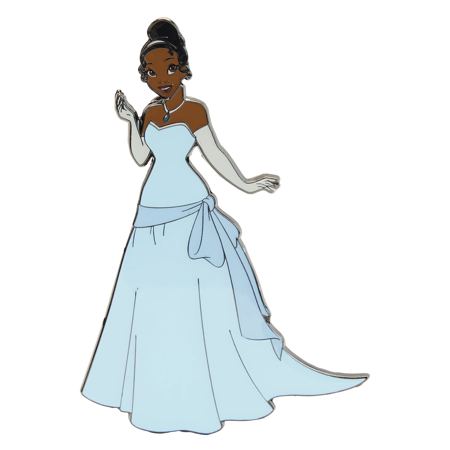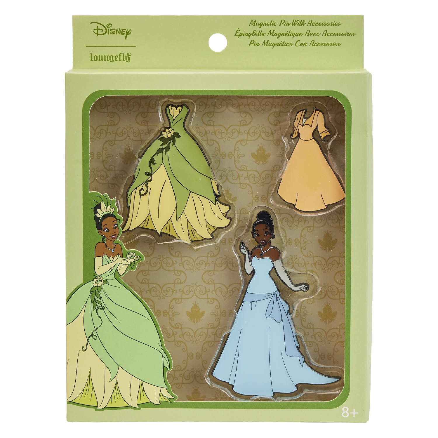 A wardrobe filled with enchanting dresses would be the chef’s kiss for Princess Tiana. Luckily, a variety of options awaits with this Loungefly Disney Tiana Paper Doll Magnetic Pin Set. The base for this pin has Tiana dressed in super cute modest undergarments. To change her look, you can select 1 of 3 magnetized outfits to fit perfectly and securely in place. Tiana has a choice of a yellow dress for whipping up a batch of scrumptious beignets, a blue gown for wishing upon an evening star, and her shimmering green wedding gown. It’s the perfect accessory for any Disney outfit—or for turning everyday outings into magical adventures.