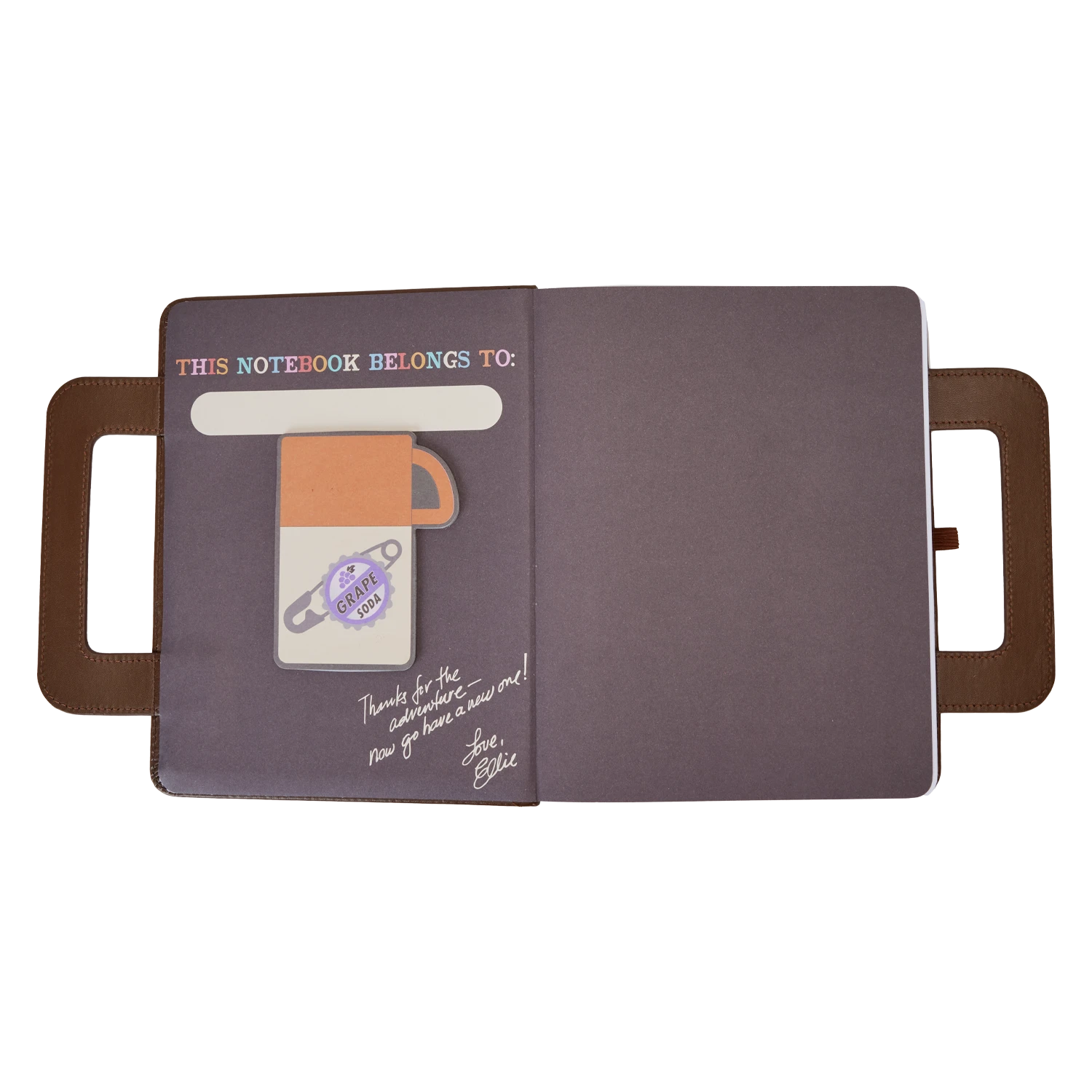Life is one big adventure! Celebrate the love story of an animated classic with the Loungefly Pixar Up 15th Anniversary Adventure Book Lunchbox Journal. Inspired by a classic lunchbox silhouette, this notebook frames each cover with a handle on the side. On the front, Ellie’s adventure book takes shape with scrapbooked details and string binding. On the back, Carl and Ellie’s names appear on the book’s back cover. Inside, the lined notebook pages are framed with Carl and Ellie, a savings jar, and clouds while Carl and Ellie appear as children in the book’s centerfold artwork. You’ll even find a space to write your name on the inside front cover, along with themed sticky notes in the shape of a vintage thermos and Ellie’s inscription! This journal has plenty of room to store your plans and makes the perfect travel log for any adventure.