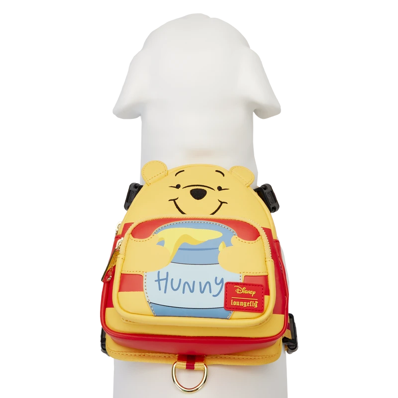 Travel to the Hundred Acre Wood with your closest friend! The Winnie the Pooh Cosplay Dog Harness takes our iconic mini backpack design and gives it a pet-friendly makeover. On the front, Winnie the Pooh takes shape with applique ears and embroidered facial features. A hunny pot appears on the front zipper pocket, where a bag dispenser provides easy access to any essentials. Adjustable nylon straps ensure a safe and comfortable fit, and a leash hook appears on the back of the harness. Whether your silly old pal is searching for snacks or playing at the park, this accessory is the perfect companion for any adventure.