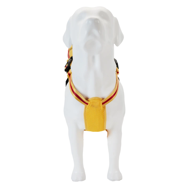 The Winnie the Pooh Cosplay Dog Harness is made of durable vegan leather (polyurethane) and features applique, embroidered, and printed details. Harness has adjustable nylon straps and shiny gold hardware. Take note of the coordinating inside lining.